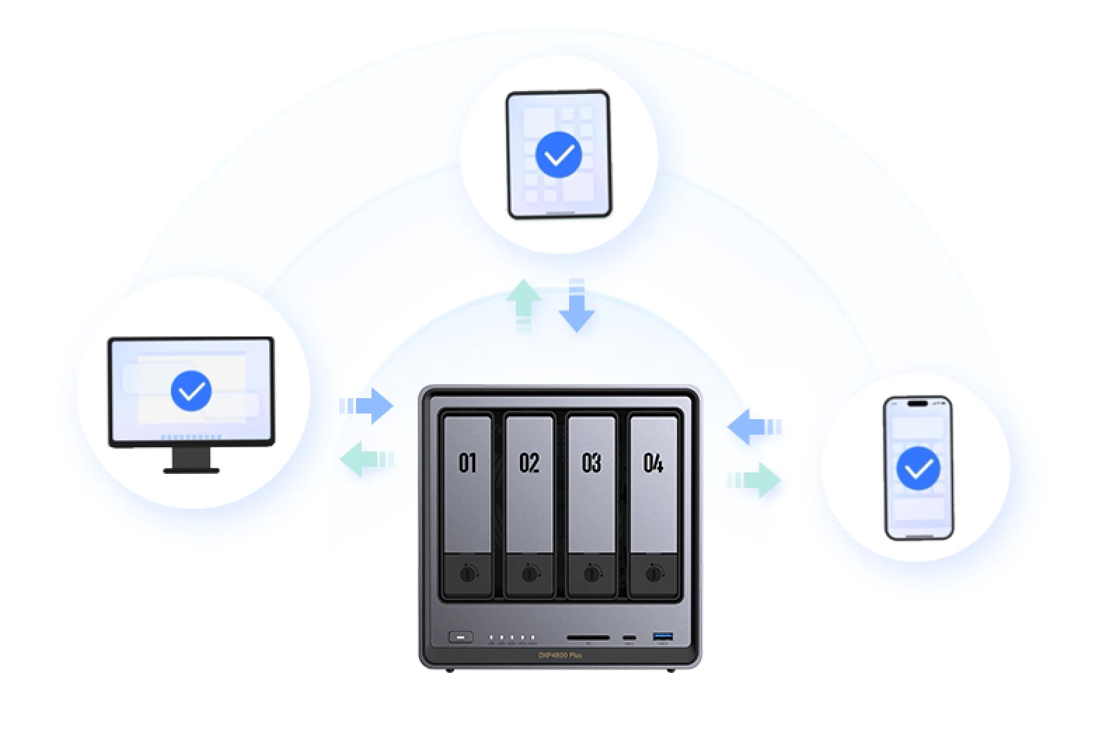 Enjoy the convenience of cloud storage but without the fees. Effortlessly back up to your central storage hub from wherever you go.