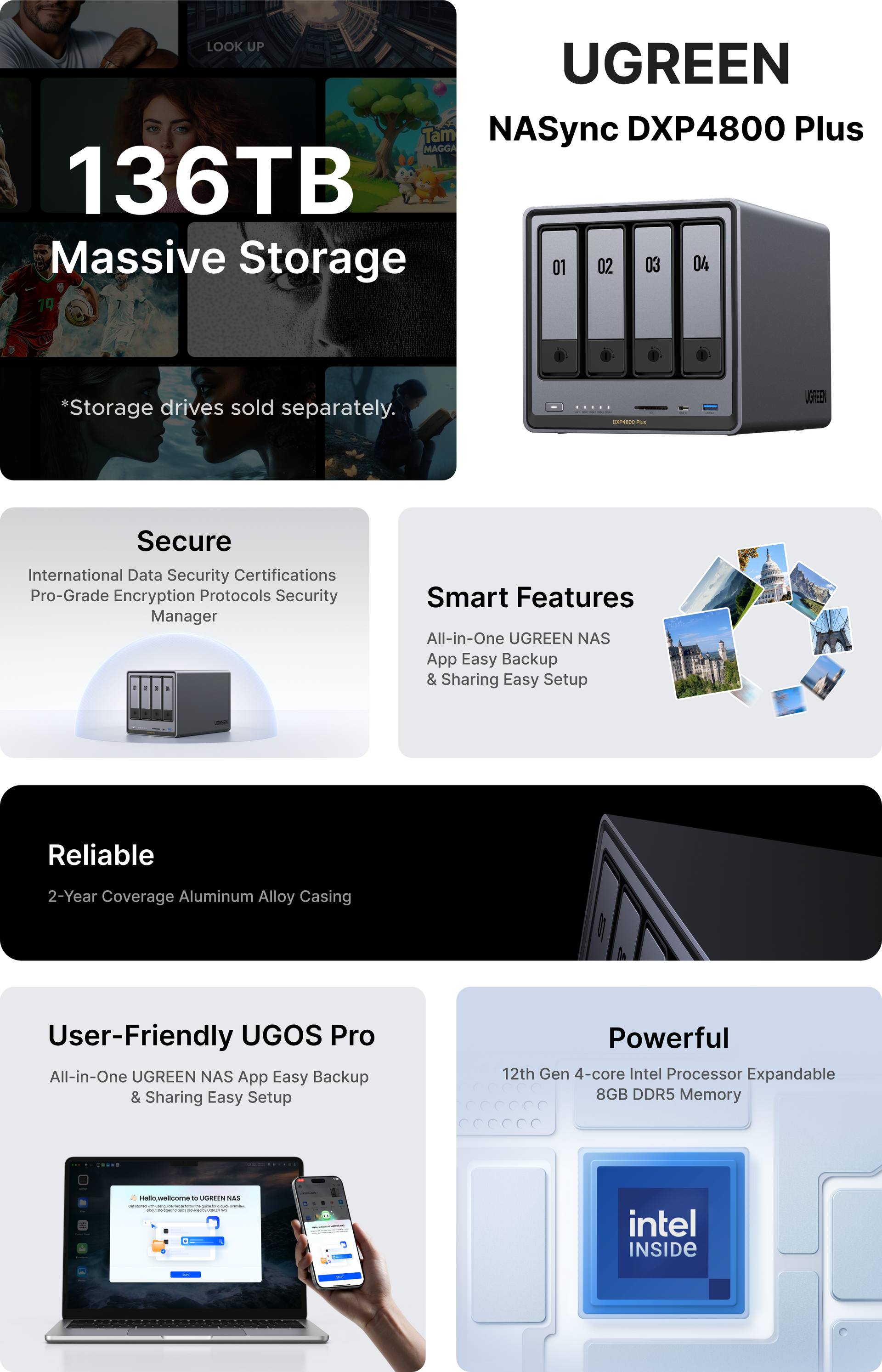 - 136TB Massive Storage: Store 47M+ photos or 92K+ movies. Never worry about space.