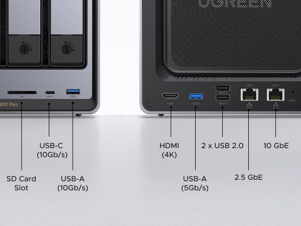 - Dual Ethernet ports: 1× 2.5GbE + 1× 10GbE for multi-gigabit networking
