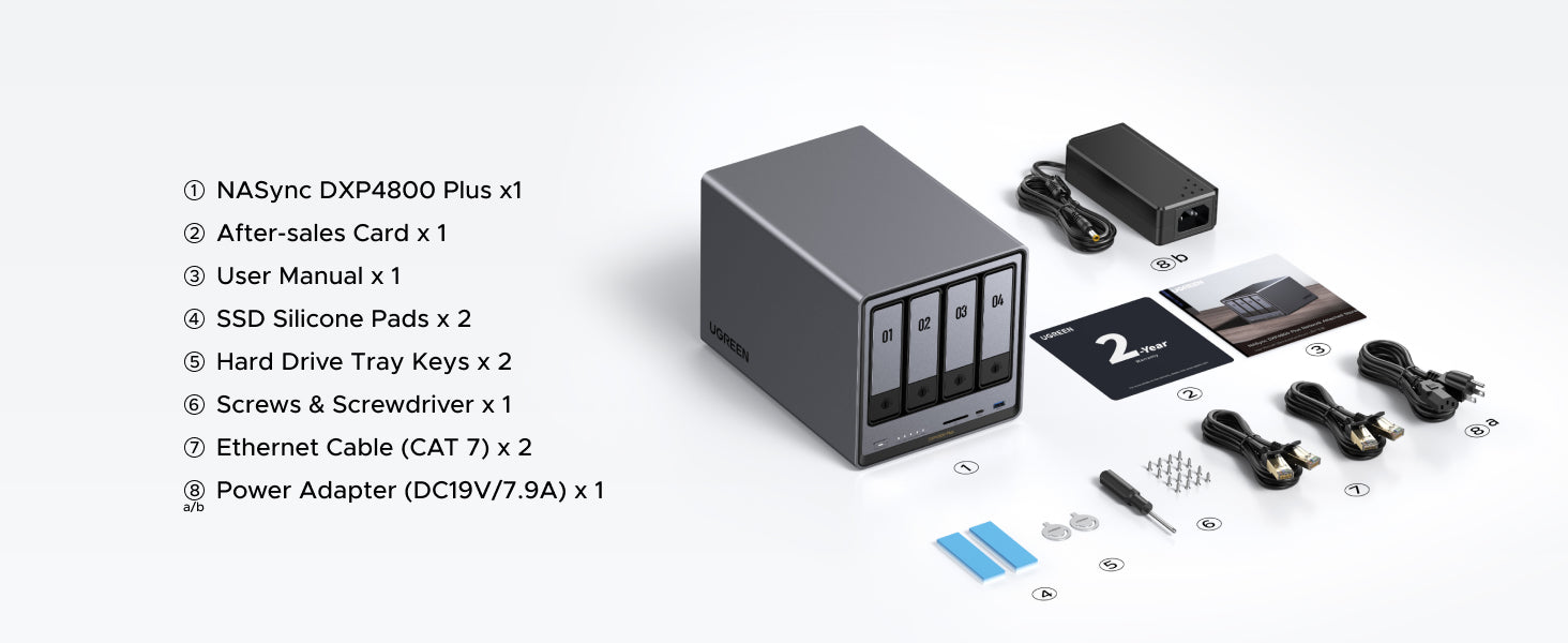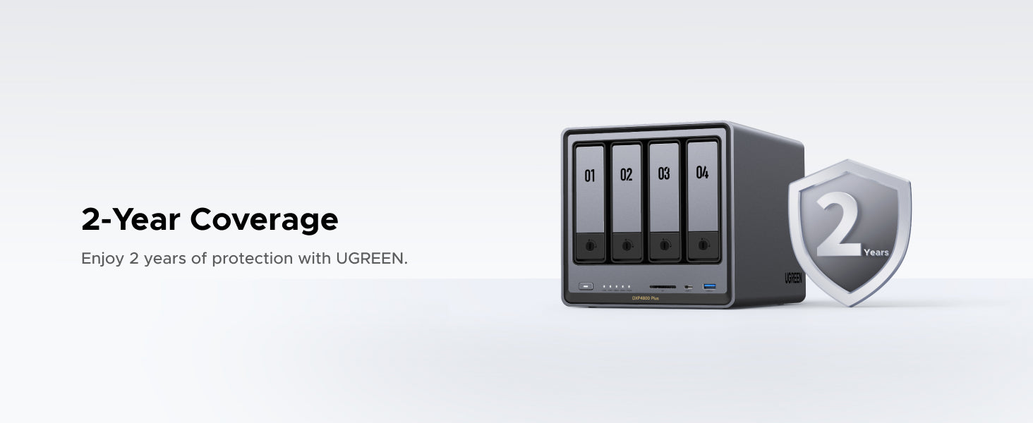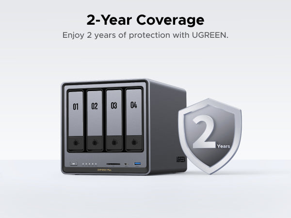 The UGREEN 4-bay NAS provides up to 136TB of storage capacity - enough to store approximately 39 million high-resolution photos or 76,000 HD movies. Your purchase is protected by a 14-Day Worry-Free Trial and 2-year limited warranty.