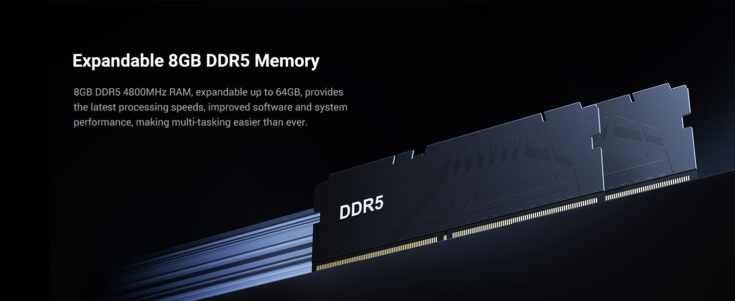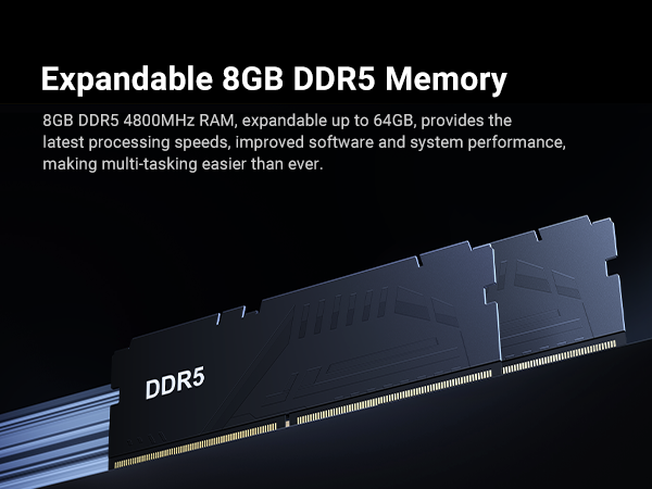 - Expandable 8GB DDR5 Memory: 8GB DDR5 4800MHz provide the latest in processing speeds and improved software and system performance.