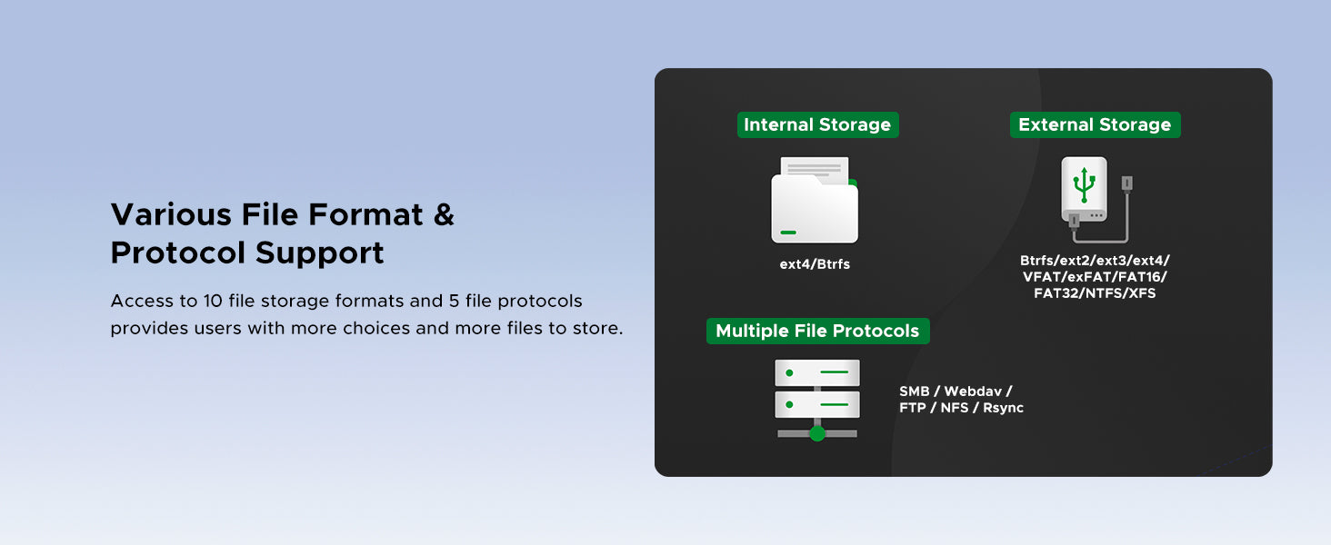 - One, All-Inclusive App: Rather than downloading individual applications for specific functions, the NAS App incorporates these functions into one place. Access Storage Manager, Files, Photos and more, all from one convenient location.