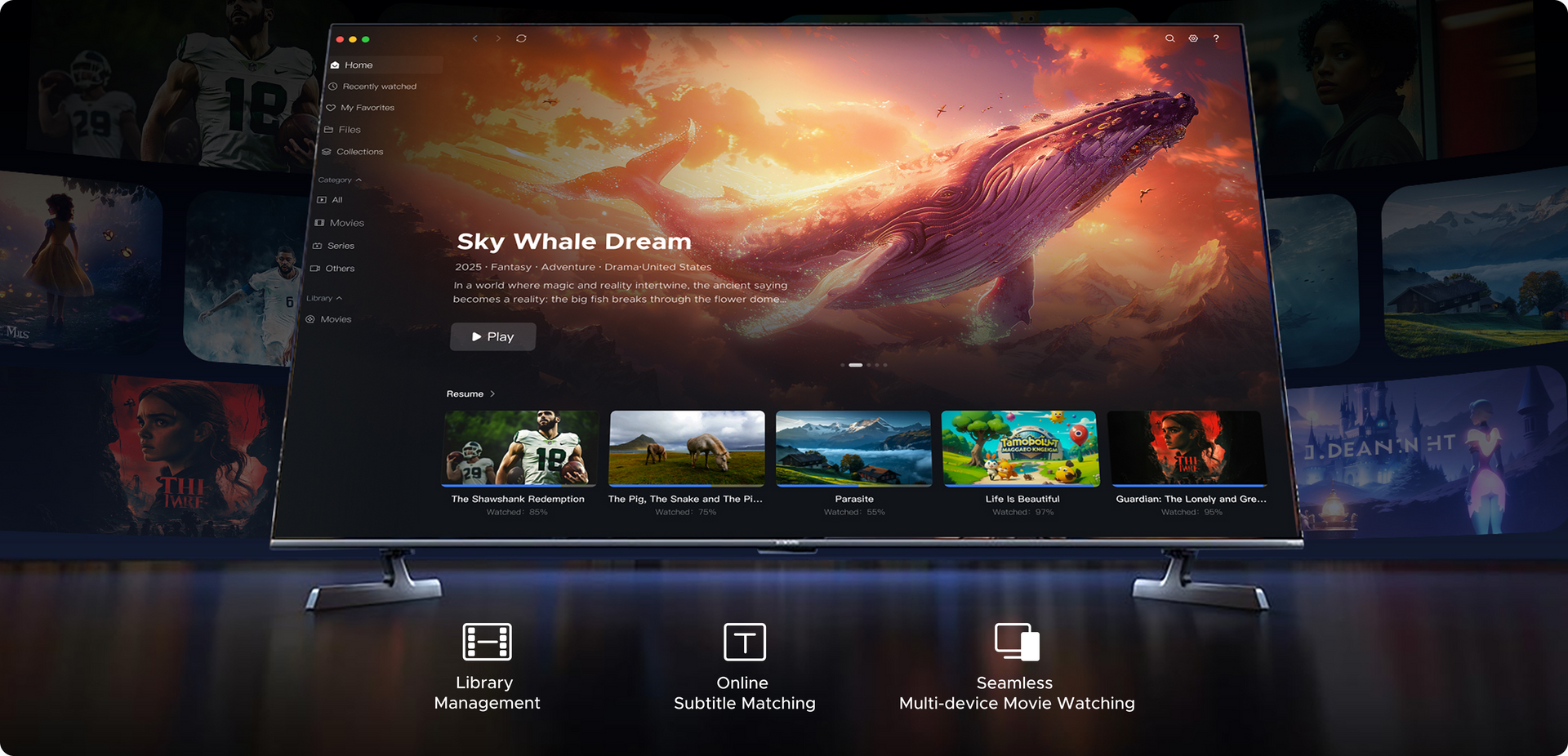 - User-friendly app: Hassle-free setup and simple file sharing across Windows, macOS, Android, iOS, web browsers, and smart TVs – secure access from any device, anytime, anywhere.