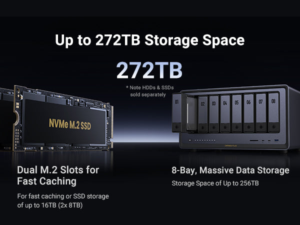 - 8-Bay, 272TB Massive Data Storage: Equipped with eight SATA and two M.2 NVMe drive bays, the NASync DXP8800 Plus has a maximum storage capacity of up to 272TB. And supports JBOD/Basic/RAID0/RAID1/RAID5/RAID6/RAID10 RAID levels. Store thousands of HD movies, pictures, and documents, Making NASync a movie library, photo album, and file storage space all in one.